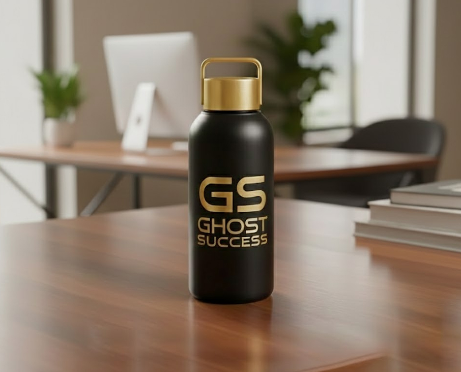 Durable, reusable branded water bottle designed for daily hydration and active use.